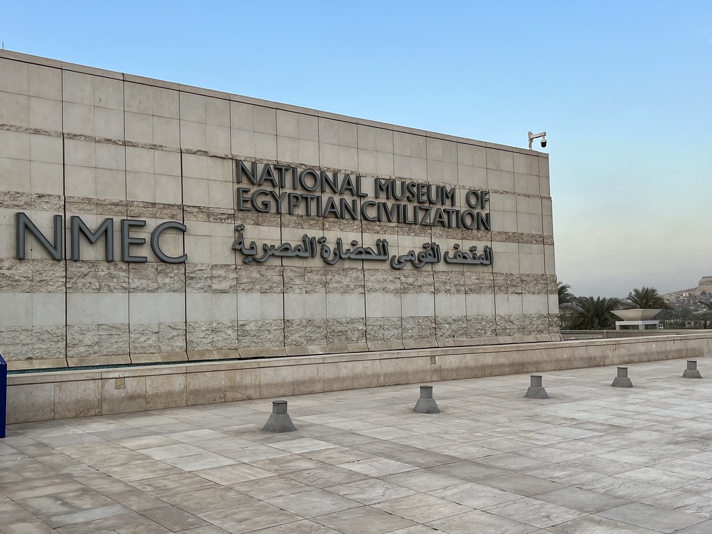 Proceed to The National Museum of Egyptian Civilization, The main Exhibition Hall shows the four main crafts that shaped the Egyptian civilization: pottery, wood, Textile and ornaments. You can see over there the oldest prosthetic toe all over the world, the skeleton of a man dates back to 30000 years ago, the Kaaba Cover (kiswaa Al kaaba) which was the last one made in Egypt during the time of president Naser and the Mahmal which it used to carry the cover from Egypt to Saudi Arabia every year in a great parade. The National Museum of Egyptian Civilization is considered the first museum all over the world exhibit a comprehensive view for the Egyptian Civilization through the history from prehistory till the modern history. NMEC exhibit several objects to show starting with the predynastic and Ancient Egyptian period, the Greco-Roman, Coptic, Islamic and modern history.